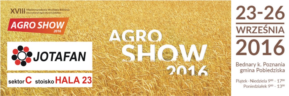 We would like to invite you to AGRO SHOW Trade Fair 2016 from 23 to 26 September 2016 in Bednary. We encourage you to visit our stand Hall 23 in sector C.