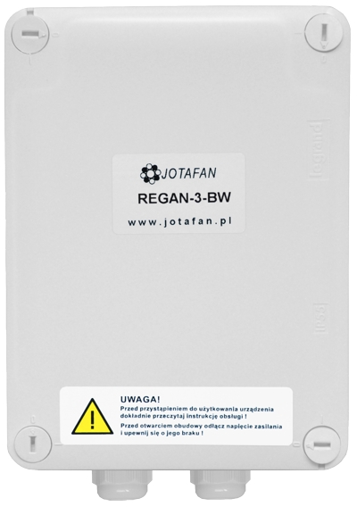 REGAN-3-BW controller unlike REGAN-3 does not have a power switch. It is destined to continuous operation and in order to turn the power supply off it must be equipped with an external power switch.