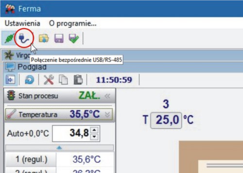 Regulator VIRGO został wyposażony w konwerter USB<>RS-485 oraz w gniazdo USB zamontowane na panelu przednim, pod klawiaturą. Dzięki temu w szybki i łatwy sposób można połączyć regulator VIRGO z komputerem (za pośrednictwem kabla USB, bez konieczności konfiguracji połączenia w programie FERMA i w regulatorze VIRGO). Modernizacja pozostała bez wpływu na dotychczasową cenę VIRGO.