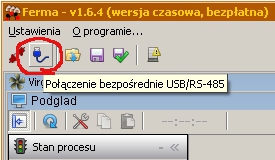 Nowością w programie jest możliwość wyboru połączenia za pośrednictwem kabla USB bez potrzeby jakiejkolwiek konfiguracji połączenia w programie FERMA i w regulatorze VIRGO. Po wyborze tego rodzaju połączenia (ikonka zaznaczona na rysunku) i naciśnięciu ikonki „połącz” program automatycznie rozpoznaje numer portu oraz dołączony do niego regulator VIRGO i zestawia połączenie. Funkcja ta znakomicie ułatwia Użytkownikowi pracę.W wersji 1.6.6 programu FERMA został wydłużony okres bezpłatnego korzystania z programu do 30 czerwca 2017r. Zachęcamy do pobrania i zainstalowania najnowszej wersji programu FERMA