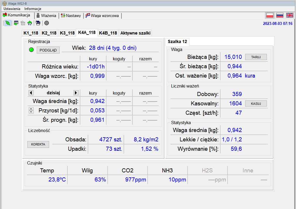 Zamieściliśmy zrzuty ekranów z oprogramowania FERMA ilustrujące pracę czujnika w rzeczywistym obiekcie: odchowalni indyczek.
