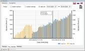 Zarejestrowane dane dobowe można pokazać na wykresach oraz wyeksportować do pliku CSV, który można otworzyć w większości arkuszy kalkulacyjnych.