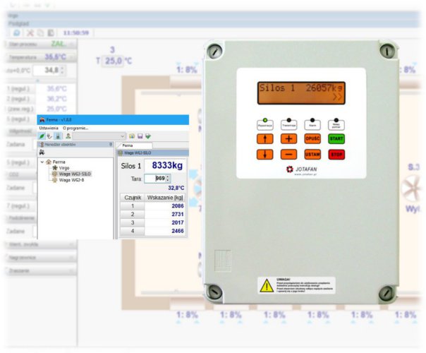 System WGJ-SILO można zintegrować w oprogramowaniu komputerowym FERMA obok regulatorów VIRGO, VIRGO-INL, systemu ważenia drobiu WGJ-8 i tak jak w przypadku tych urządzeń łączyć się z nim przez Internet.
