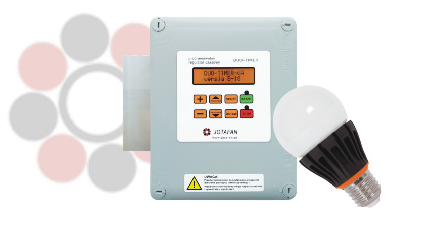 - DUO-TIMER-6A-LED - programator czasowy wyposażony w jedną sekcję przeznaczoną do płynnego sterowania mocy oraz drugą typu „załącz-wyłącz”. Uhonorowany Znakiem "Nowość" na targach FERMA 2018 w Łodzi!