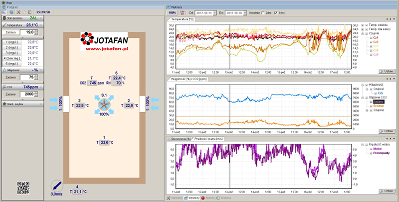 - 16 czujników (temperatury, wilgotności, stężenia CO2),