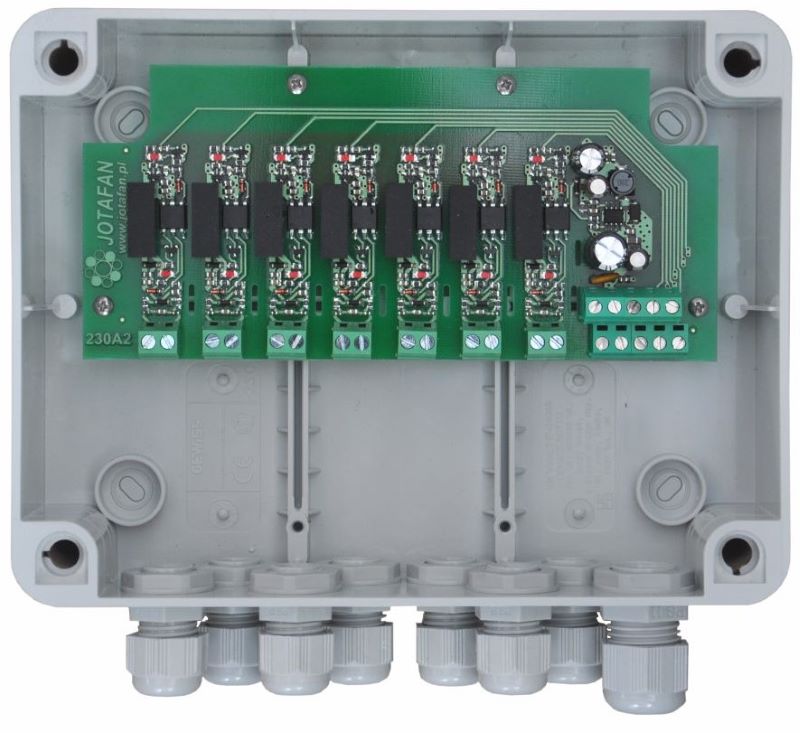 Siedmiokanałowy separator beznapięciowych sygnałów "załącz-wyłącz" (zwarty-rozwarty) służy do galwanicznego oddzielenia źródeł sygnałów dla centrali alarmowej (np. JOTAFAN CA-GSM-1-LCD) w przypadku, gdy zachodzi obawa, iż mogą się one znajdować na różnych potencjałach, a także gdy spodziewany jest wysoki poziom zakłóceń elektromagnetycznych (przepięć) mogących uszkodzić centralę.