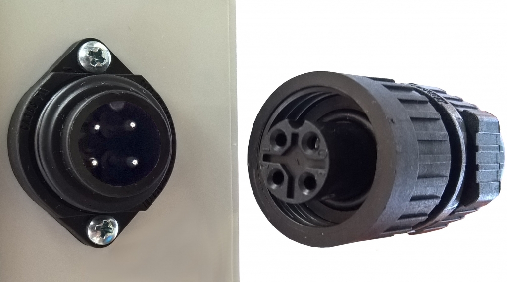 Złącza są czterostykowe: 3 zestyki prądowe i czwarty - ochronny (PE).
